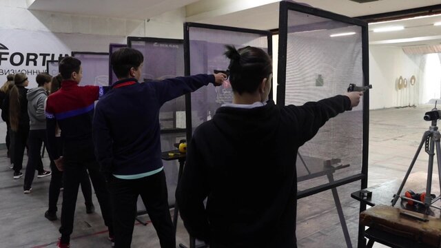 Учения по борьбе за живучесть корабля (тушение пожара, прохождение затопленных отсеков и заделывание пробоин в бортах) в Московском морском центре ДОСААФ России.
