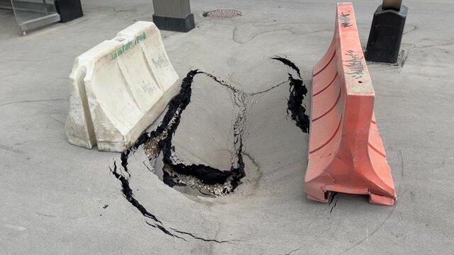 На юго-востоке столицы из-за проседания грунта в районе проходки тоннелей новой линии метро в здании автобазы образовалась трещина. Здание срочно эвакуировали, движение по улице было перекрыто.