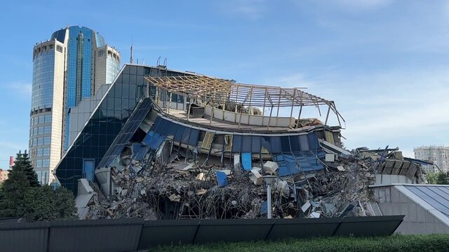Снос старого здания кинотеатра "Бирюсинка" на юге Москвы