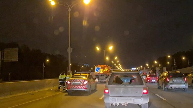 Около половины десятого вечера, на внутренней стороне 37-го км МКАД произошло ДТП. Столкнулись ГАЗель и Range Rover. Со слов очевидцев - обе машины двигались во втором правом ряду. ГАЗель, двигающаяся сзади, ударила впереди идущий внедорожник. От удара легковушку закрутило и она вылетела на обочину и ударилась о столб. ГАЗель вылетела в крайний левый ряд. Пострадали два человека: девушка - водитель внедорожника и молодой человек - водитель ГАЗели. Причину и виновника ДТП установит следствие.