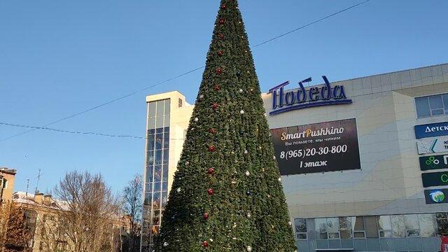 Монтаж каркаса новогодней ёлки на Лубянской площади в Москве