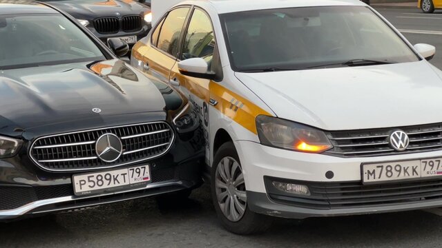 Автомобиль такси снес столб после ДТП на Калужском шоссе