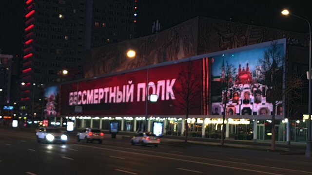 На экранах Останкинской башни в честь Дня Победы разместили праздничную открытку с Георгиевской ленточкой в рамках акции «Бессмертный полк». С 11:00 до 12:30 на экранах идёт демонстрация ролика с фотографиями героев Великой Отечественной войны и брендбуком акции «Бессмертный полк». Вечером с 20:30 запланирован повтор демонстрации ролика с фотографиями героев Великой Отечественной войны акции «Бессмертный полк».