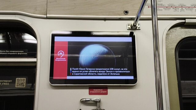 Трансляция поздравления С.Собянина с Днем Победы на станциях Московского метро