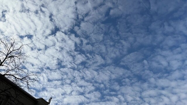 Ровный слой белых облаков на голубом небе.