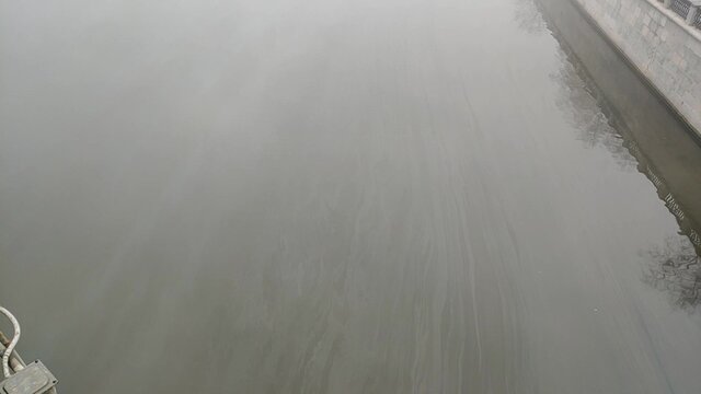 Работа оперативных служб по установке заградительных бонов на северо-западе столицы на реке Сходня напротив дома 19 по улице Василия Петушкова для предотвращения распространения попавших в неё в результате ДТП на МКАДе нефтепродуктов.