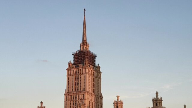 Завершились работы по сохранению декоративных элементов и скульптур, украшающих башню гостиницы «Пекин». Реставраторы бережно работали с каждым декоративным элементом, находясь на деревянных лесах на высоте 60 метров. Особое внимание специалисты уделили сохранению четырех скульптур — защитника, колхозницы, рабочего и учительницы. Их очистили от поздних наслоений краски, устранили трещины и сколы, обработали поверхности специальными составами. Аналогичные работы провели с декоративными панно.
