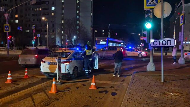 Последствия ДТП с автомобилем ДПС на Варшавском шоссе на юге Москвы
