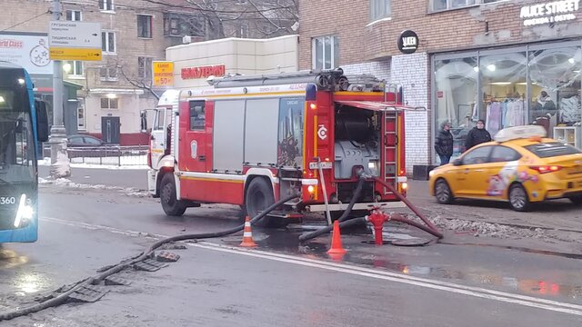 Оперативные службы на месте пожара на Грузинском Валу в центре Москвы