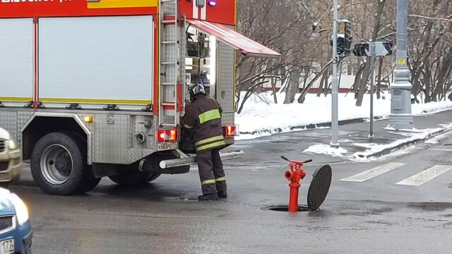 Оперативные службы на месте возгорания в доме на Грузинском Валу 9А