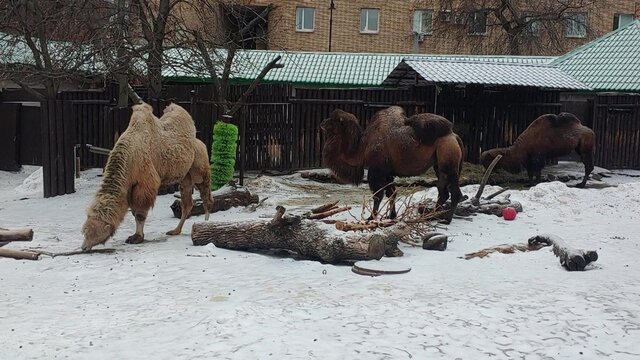Дружное семейство кустарниковых собак в полном составе выходит на весеннюю прогулку в Московском зоопарке.