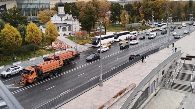 Промывка шампунем прогулочной зоны на улице Рождественка в центре Москвы.