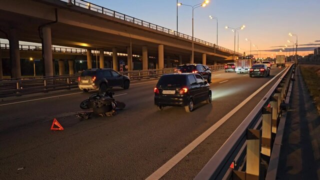 Последствие ДТП с мотоциклом на Боровском шоссе в ТиНАО