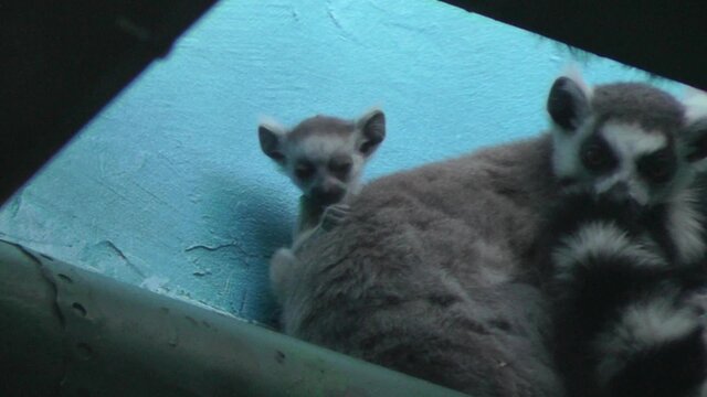 Кошачьи лемуры в уличном вольере Московского зоопарка.