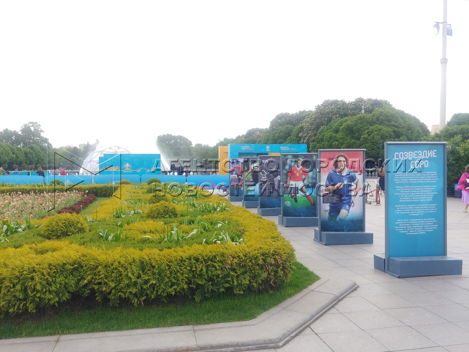 Фотогалерея звезд мирового футбола и спортивная зона на презентации кубка Европы по футболу в Парке Горького
