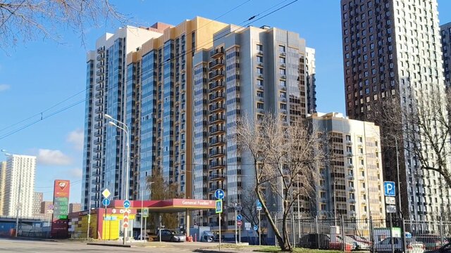 Вид с квадрокоптера на строительство первого дома по программе реновации в районе Отрадное