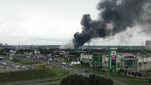 Дымом от пожара заволокло прилегающий к Лужнецкой набережной район. Работает лаборатория по контролю за загрязнением вохдуха.