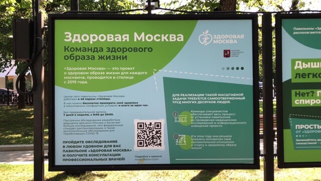 Вид с квадрокоптера на обстановку у павильона "Здоровая Москва" в Братеевском парке