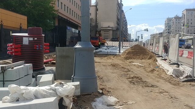 Новую вафельную разметку нанесли на улице Красная Пресня.