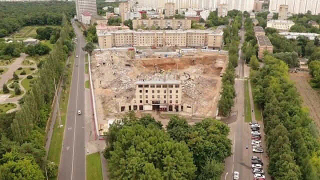 Вид с квадрокоптера на ход работ по застройке бывшей территории гостиницы "Останкино".