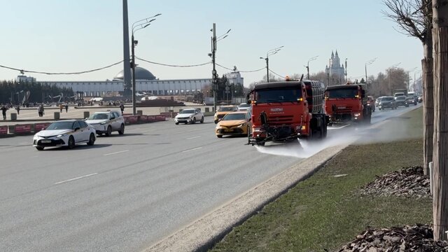 Ворошение, уборка и вывоз снега, который ещё не расстаял в Москве.
