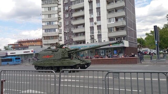 Авиация приняла участие в генеральной репетиции Парада Победы над Москвой. Воздушная часть началась с пролёта крупнейшего в мире транспортного вертолёта Ми-26 в сопровождении двух боевых Ми-24, за которыми проследовали ударные Ка-52 и Ми-28Н, а также военно-транспортные Ми-8. После пролетели три военно-транспортных самолёта Ил-76МД, топливозаправщик Ил-78 и воздушный командный пункт Ил-80 в сопровождении истребителей МиГ-29. За ними продолжали маршрут стратегические бомбардировщики Ту-95МС и Ту-22М3, а также истребители Су-35С и перехватчики МиГ-31И. Процесс дозаправки показали Ил-78 и стратегический бомбардировщик Ту-160. Далее в небе появились фронтовые бомбардировщики Су-24МР и истребители-перехватчики МиГ-31БМ. Можно было наблюдать четыре истребителя пятого поколения Су-57 и восемь МиГ-29СМТ, которые выстроились в символ Z. Далее четыре МиГ-29 и пять Су-30СМ показали фигуру "Кубинский бриллиант". Завершил авиационную часть шесть штурмовиков Су-25, которые окрасили небо над Москвой в цвета российского триколора.