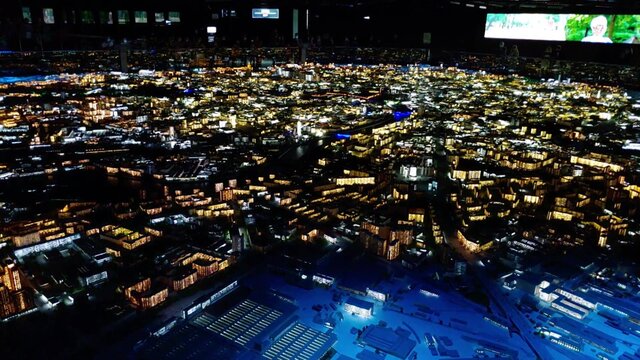 Светотехническое шоу "Мегаполис Москва" в павильоне "Макет Москвы" на ВДНХ.