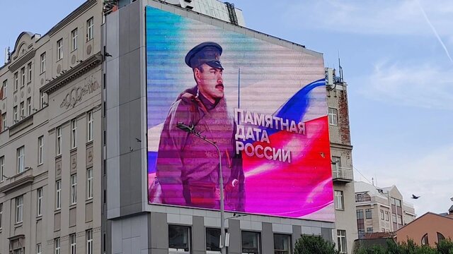 Открытка ко Дню города на медиафасаде Смоленского метромоста