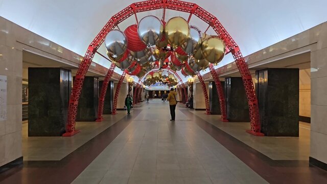 Большая нарядная ёлка и «золотой орнамент» на Пушкинской площади.