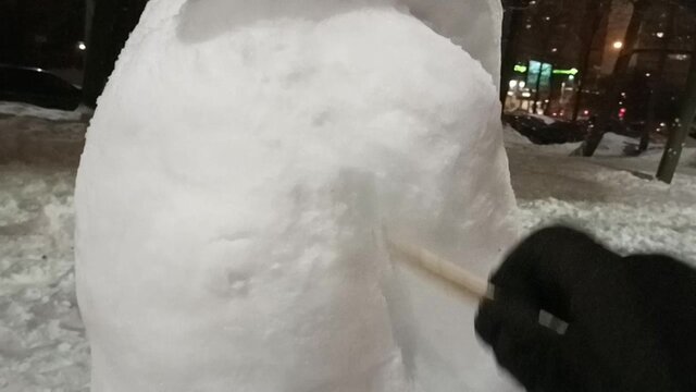 Огромный заяц из снега встречает посетителей на входе в парк "Музеон"