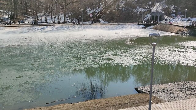 Подготовка к крещенским купаниям на Рождественском пруду на северо-западе столицы
