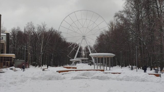 В Химках в рамках реконструкции парка имени Льва Толстого началась установка кабин на колесе обозрения.
