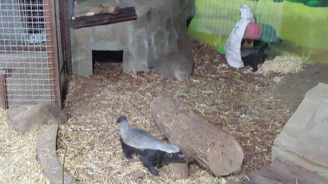 Кормление медоедов в Московском зоопарке.