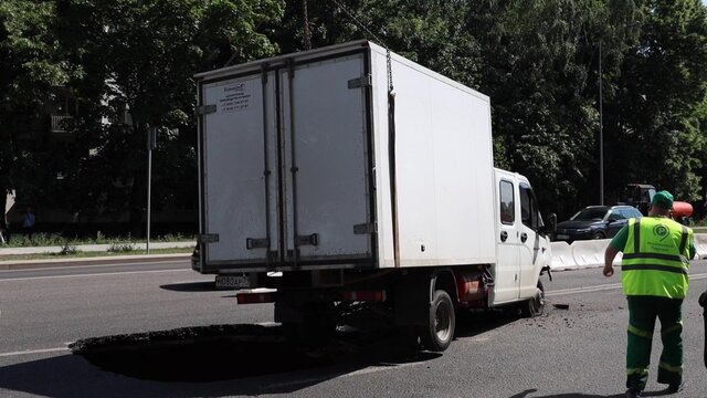 Последствия обрушения автомобильной парковки в строительный котлован возле жилого дома на улице 2-я Черногрязская