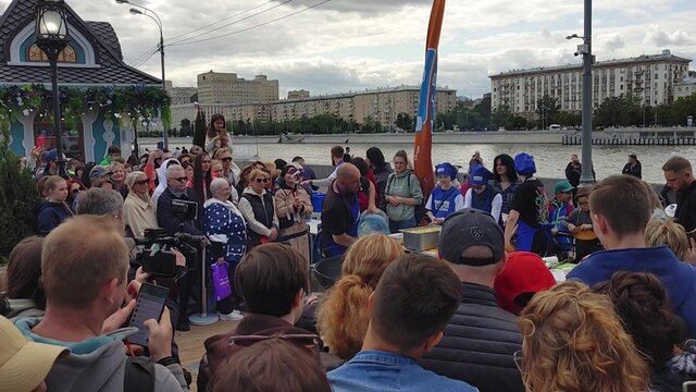 Десятки людей отведали уху на фестивале "Рыбная неделя в Москве" в Парке Горького