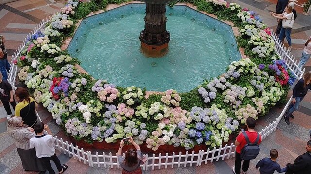 Отдых горожан и гостей столицы возле фонтана в ГУМ.