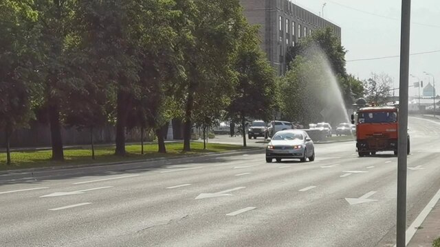 Коммунальные службы проводят работы по аэрации столичного воздуха на городских магистралях. Так, на Ленинском проспекте была замечена коммунальная техника, которая проводила промывку дорожного полотна, а также аэрацию струями вверх для охлаждения воздуха. Данные работы проводятся регулярно в периоды установления жаркой погоды. По данным синоптиков, 6 августа в столице установлен самый жаркий день с начала текущего года. Столбики термометров преодолели 30-градусную отметку и в некоторых районах столицы достигли 32-33 градусов. По прогнозам, жара в ближайшие дни сохранится и температура будет выше климатической нормы. Похолодание до 20 градусов ожидается не ранее середины следующей недели.