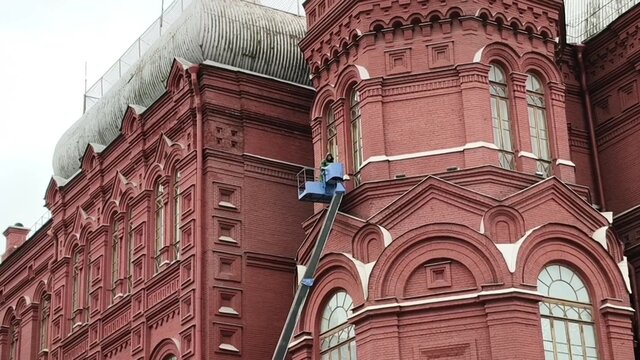 Промывка стеклянной коры перед зимой в парке "Зарядье".