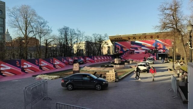 В Новопушкинском сквере начался монтаж праздничных конструкций