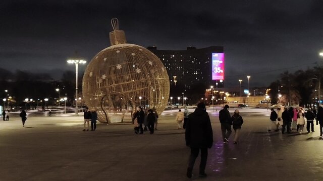 Световое шоу на поверхности большого мультимедийного шара на Поклонной горе.