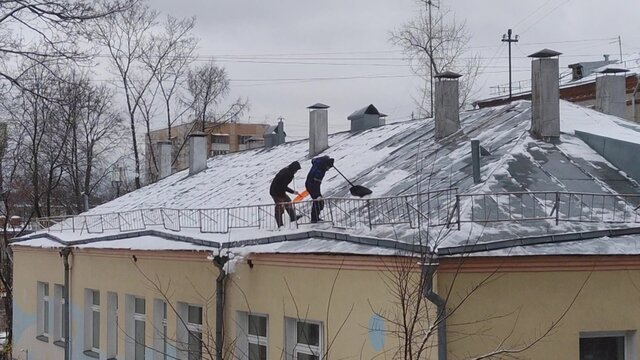 Чистка кровель от снега на Никитском бульваре, дом 9.