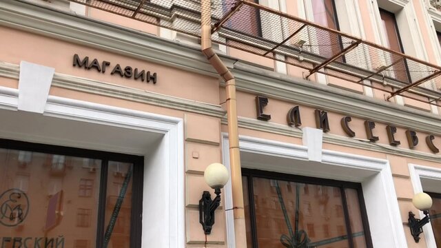 Новогоднее оформление витрин Елисеевского магазина на Тверской улице
