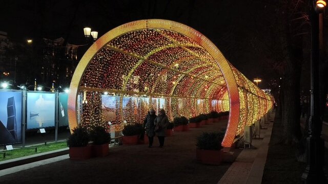 Световой тоннель на Тверском бульваре, украшенный китайскими фонариками