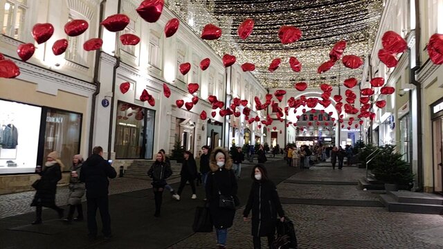 Сотни горожан и гостей столицы приезжают в украшенный сердцами Третьяковский проезд, чтобы сделать на память красивые фотографии.