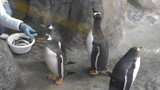 Кормление пингвинов Гумбольдта в Московском зоопарке