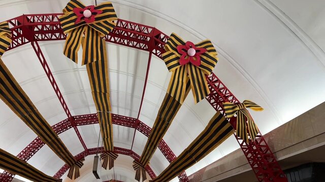 Огромные розы украсили станцию "Трубная" Московского метрополитена
