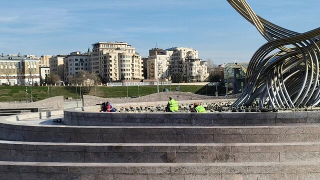 Временную желтую разметку нанесли на Тверской улице для подготовки к Параду Победы