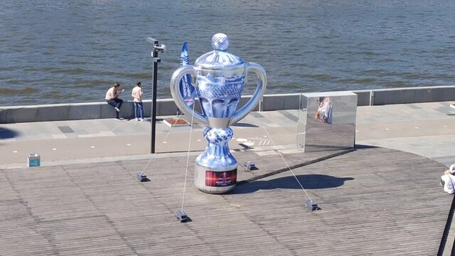 Пятиметровую инсталляцию кубка России по футболу установили у входа в парк "Сокольники"