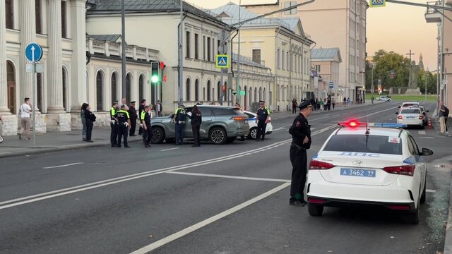 Служебные ретроавтомобили у здания столичного управления ГАИ