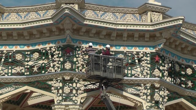 Цветы у фонтана-ротонды «Наталья и Александр» в центре Москвы